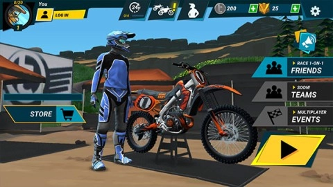 1、进入疯狂特技摩托车3的最新版本,首先映入眼帘的是大厅界面,左侧的“store”是你的购物天堂,那里拥有你需要的所有装备。在上方,你可以选择不同的摩托车型号和车手,而左上角则是你的个人中心,随时随地查看你的战绩和详情。