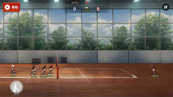 2、进入比赛后点击右下方的按钮可以进行发球,发球后可以控制角色拦网和举球。